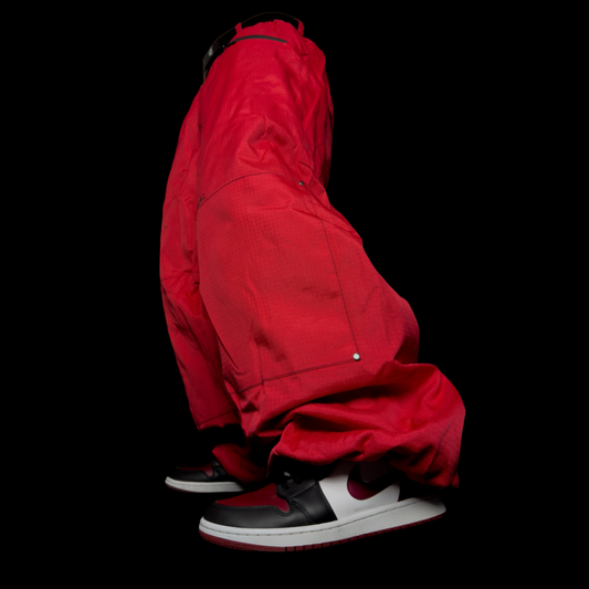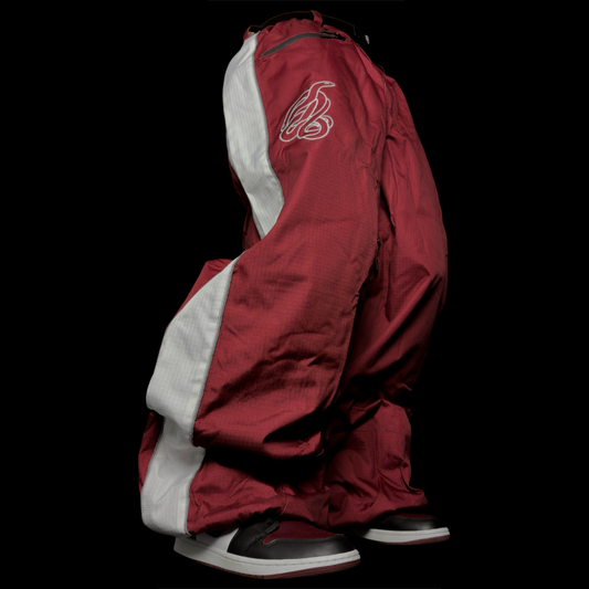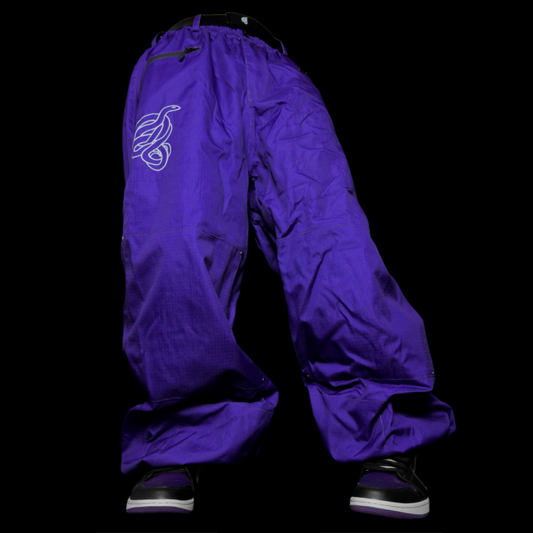 Our snowpants are baggy where it looks good, and fit where you want them to. Baggy around the legs, with elastic around the waist and ankles.